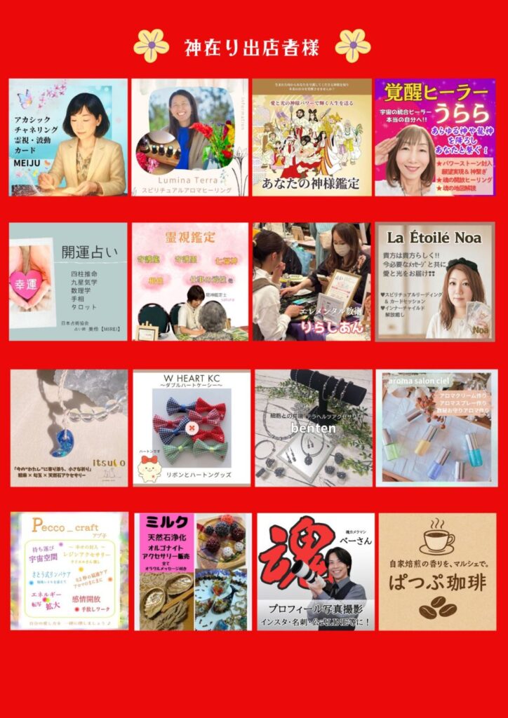 参加できていない方は、どうぞ神在りフェスで、少しでも私のエネルギーワークを受けて、波動をあげにきてくださいませ♪